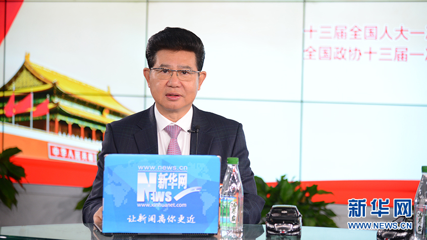 3月14日,全國政協委員、蘇寧環球董事長張桂平做客新華網2018全國兩會特別訪談。新華網 楊濛攝