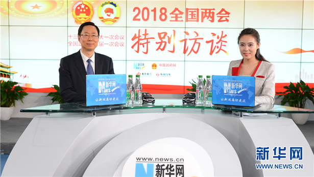 3月14日,全國人大代表、南京市市長藍紹敏(左)做客新華網2018全國兩會特別訪談。新華網 楊濛攝