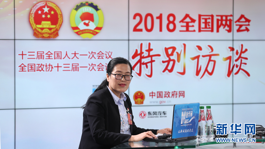 全國人大代表、中國工商銀行陜西省銅川市長虹路支行主任柜員郭曉燕做客新華網2018全國兩會特別訪談 新華網 郭小天攝