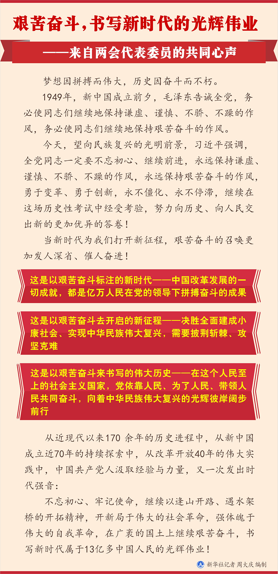 圖表:艱苦奮斗,書寫新時代的光輝偉業——來自兩會代表委員的共同心聲 新華社記者 周大慶 編制
