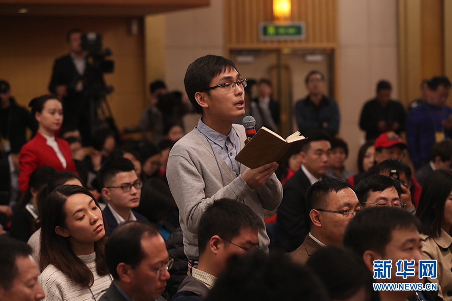 十三屆全國人大一次會議新聞中心于3月16日10時在梅地亞中心多功能廳舉行記者會,邀請教育部部長陳寶生就“努力讓每個孩子都能享有公平而有質量的教育”相關問題回答中外記者提問。圖為光明日報融媒體記者提問。新華網/中國政府網 曲植 攝