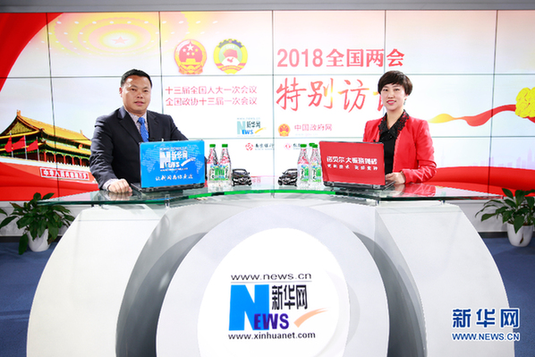 圖為全國(guó)人大代表、河南省平頂山市寶豐縣大黃村黨支部書(shū)記馬豹子做客新華網(wǎng)2018全國(guó)兩會(huì)特別訪(fǎng)談 新華網(wǎng) 范作言 攝