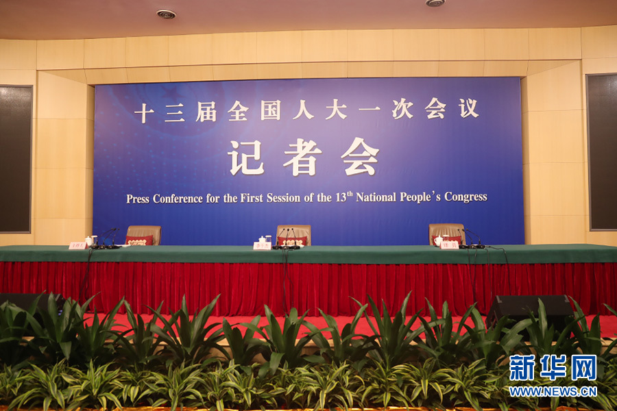 ? 十三屆全國人大一次會議新聞中心3月17日(星期六)15時在梅地亞中心多功能廳舉行記者會,邀請環保部部長李干杰就“打好污染防治攻堅戰”相關問題回答中外記者提問。圖為記者會開始前。新華網/中國政府網 陳杰 攝