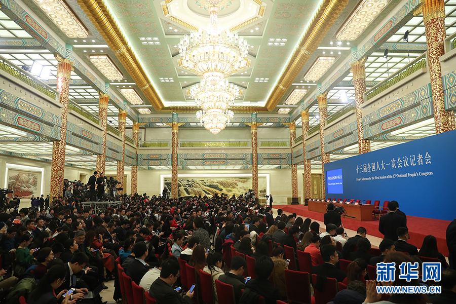 3月20日上午,十三屆全國人大一次會議閉幕后,國務院總理李克強將在人民大會堂三樓金色大廳會見采訪十三屆全國人大一次會議的中外記者并回答記者提出的問題。圖為記者會現場。 新華網/中國政府網 翟子赫 攝