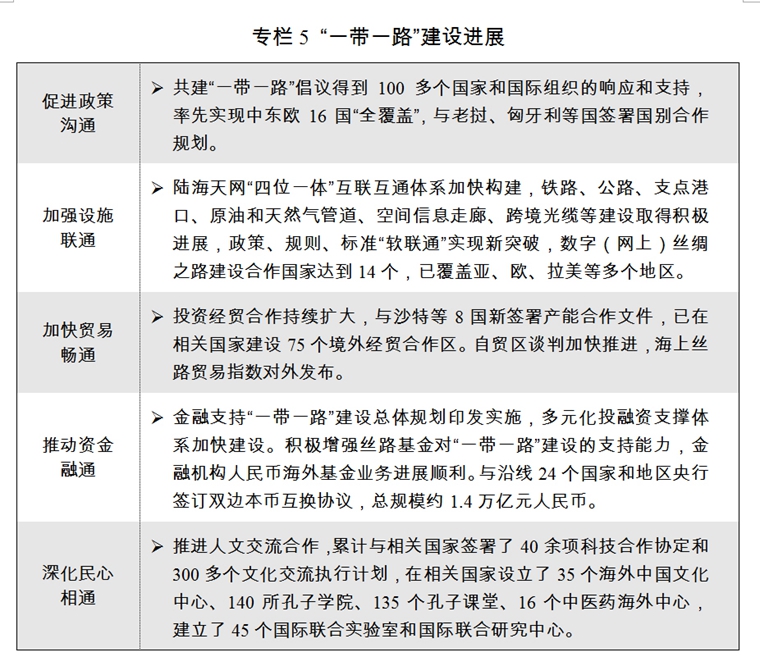 (六)以“一帶一路”建設(shè)為重點(diǎn),開放型經(jīng)濟(jì)新體制穩(wěn)步健全。著力提高“引進(jìn)來(lái)”水平,持續(xù)改善“走出去”結(jié)構(gòu),更深層次更高水平的全方位開放格局加快形成。