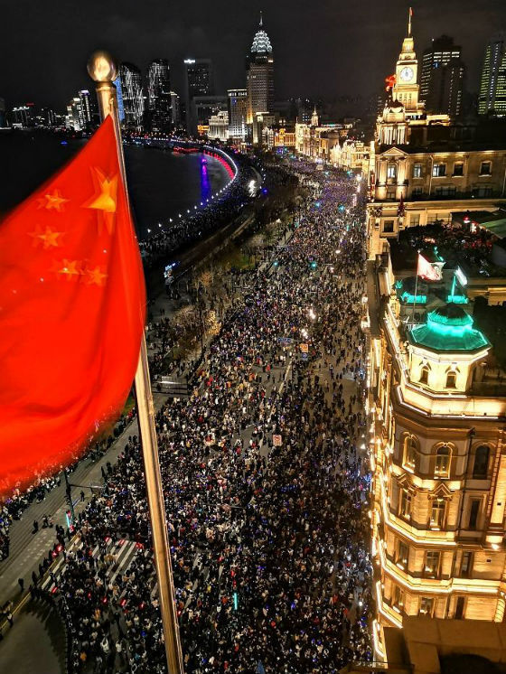 2018年最后一夜,浦江兩岸華燈溢彩,盡管天氣寒冷,但仍有不少市民、游客齊聚外灘跨年。據統計,截止今天晚上22時,外灘江堤客流累計已達37萬人次。23時許外灘迎來當天最后一波客流高峰,接近零點時瞬時客流達到當天最高的9.1萬人。