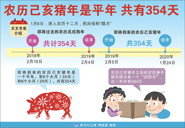 圖表:農歷己亥豬年是平年 共有354天 新華社記者 胥曉璇 編制