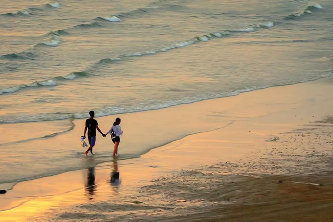 2018-07-22,廣東陽江。夏日晚霞,一對情侶牽著手在海灘漫步,享受著陽光的沐浴。作者:不老松