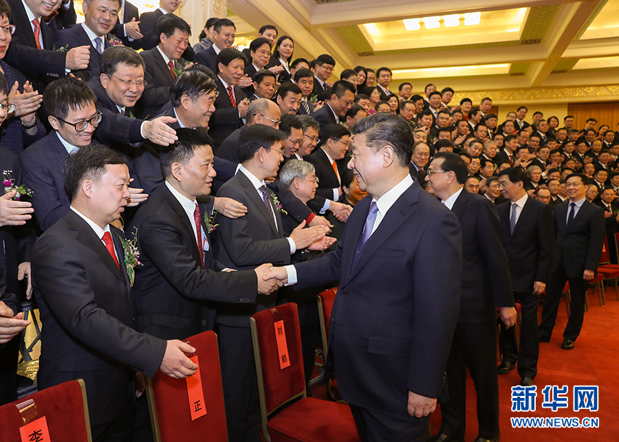 1月8日,2018年度國家科學技術獎勵大會在北京人民大會堂隆重舉行。這是習近平等黨和國家領導人同獲得2018年度國家最高科學技術獎的哈爾濱工業大學劉永坦院士和中國人民解放軍陸軍工程大學錢七虎院士一道,為獲得國家自然科學獎、國家技術發明獎、國家科學技術進步獎和中華人民共和國國際科學技術合作獎的代表頒發證書。 新華社記者 鞠鵬 攝