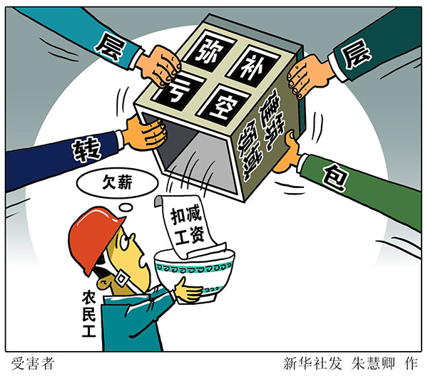 濟南市農民工綜合服務中心主任丁麟宏說,一些施工單位為取得承包權,惡意競爭壓低價格,再將工程和勞務關系層層發(fā)包,延長了風險鏈條,而一旦工程款等前端環(huán)節(jié)出現合同損失,施工方便以扣減工資方式彌補虧空,最終使農民工成為受害者。