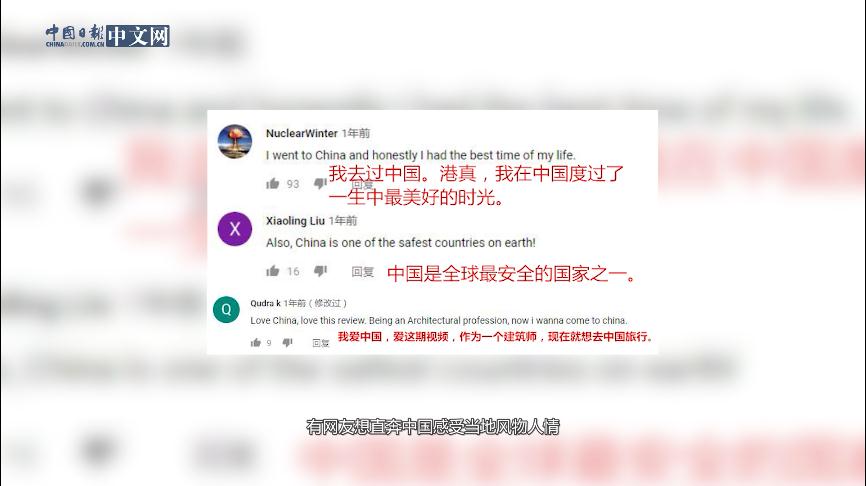 2018年12月23日,旅游博主“Travellight”在YouTube發布題為“我太想念中國”的視頻,該視頻點擊量高達12.1萬次。她在視頻中表示,剛剛離開中國幾個月,就迫不及待地想回來。