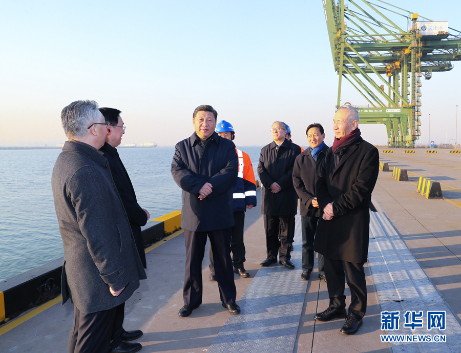 1月16日至18日,中共中央總書記、國家主席、中央軍委主席習(xí)近平在京津冀考察,主持召開京津冀協(xié)同發(fā)展座談會(huì)并發(fā)表重要講話。這是1月17日下午,習(xí)近平在天津港碼頭考察。 新華社記者 鞠鵬 攝