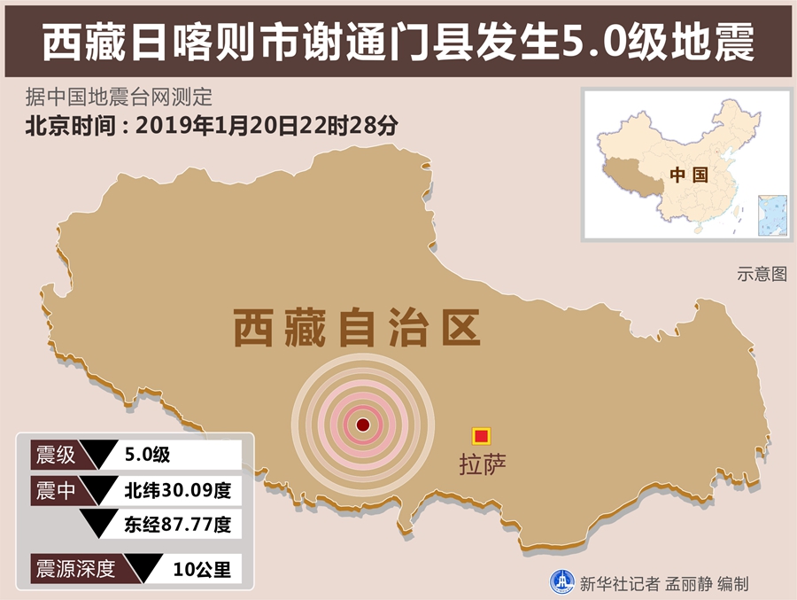 圖表:西藏日喀則市謝通門(mén)縣發(fā)生5.0級(jí)地震 新華社記者 孟麗靜 編制