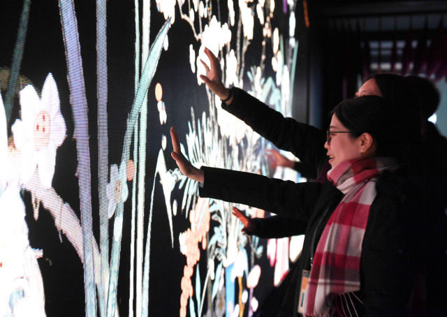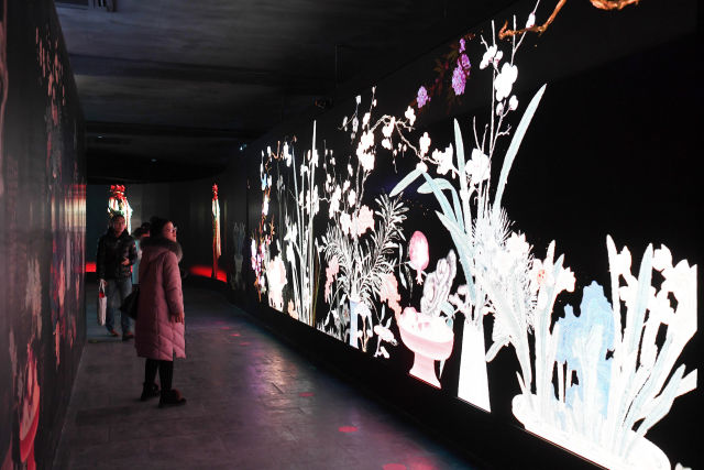 這是1月21日拍攝的數(shù)字沉浸體驗(yàn)展“花開歲朝”部分。