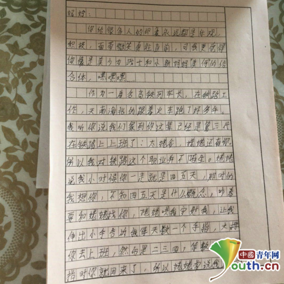 小嘉琪寫給列車長媽媽的信。中國青年網記者 尹海超 攝