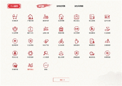 北京市政務服務網個人服務項按主題分類。網絡截圖