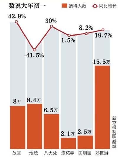 昨天是農(nóng)歷大年初一,“春節(jié)”假日第二天,記者從北京市假日辦獲悉,當(dāng)日,全市重點(diǎn)監(jiān)測(cè)的146家旅游景區(qū)共接待游客112.63萬人次,其中故宮博物院共接待8萬人次,同比增長42.9%;廟會(huì)等各類民俗活動(dòng)共接待40.1萬人次。市屬11家公園及園博館共迎來游客25萬人次,同比去年增長11%。各公園開展了傳統(tǒng)園林賀歲、鮮花廟會(huì)及非遺技藝、經(jīng)典展陳等不同形式的游園活動(dòng),給來園市民游客拜大年、送福氣。