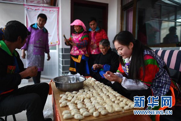 2月4日,松德村五社村民李玉花(右一)和家人一同包餃子。當(dāng)日是除夕,青海省海東市互助土族自治縣丹麻鎮(zhèn)松德村五社的40戶村民在新居中喜迎新春。2018年,這40戶村民通過易地扶貧搬遷政策住進(jìn)新房并順利實(shí)現(xiàn)脫貧。 新華社記者 張宏祥 攝