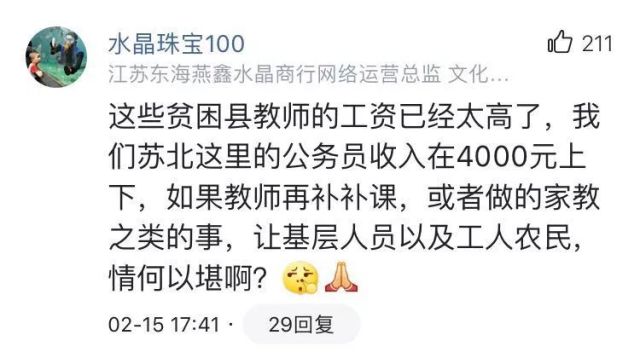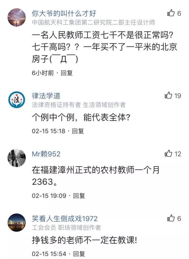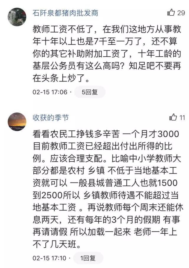 2月15日,經濟日報新聞客戶端推送消息《教育部:某些國家級少數民族貧困縣教師月薪已達7000元》,引起大家的強烈反響。對于目前大多數教師的薪資水平、怎么看待教師待遇、怎么評價待遇的高低才客觀等問題,眾多網友進行了熱烈的討論,有教師還曬出了自己工資單……