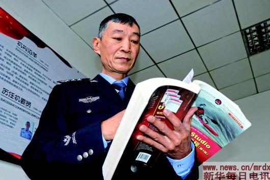 ▲陳昆平查閱軟件系統(tǒng)開(kāi)發(fā)的書籍。(當(dāng)?shù)毓矙C(jī)關(guān)供圖)