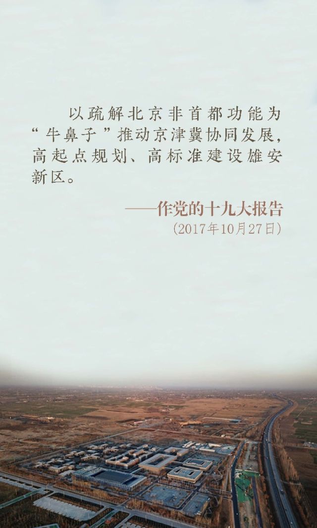 2017年2月,京津冀協同發展戰略提出三周年之際,習近平總書記來到正在規劃的河北雄安新區和北京市考察。4月1日,新華社受權發布:中共中央、國務院決定設立河北雄安新區。