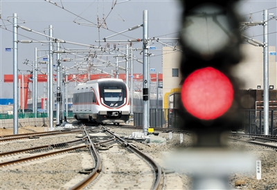 1月29日,新機(jī)場線列車在測試運(yùn)行。資料圖片/新京報(bào)記者 浦峰 攝