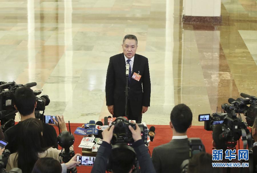 3月5日,第十三屆全國(guó)人民代表大會(huì)第二次會(huì)議在北京人民大會(huì)堂開幕。這是國(guó)家市場(chǎng)監(jiān)督管理總局局長(zhǎng)張茅在“部長(zhǎng)通道”接受采訪。 新華社記者 殷剛 攝