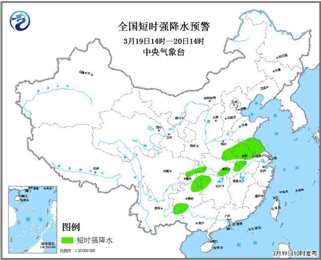 這次降雨過程中,會有明顯的雷電天氣。從19日夜間開始,河南南部、江蘇、安徽東北部、湖北北部、湖南西北部和貴州北部等地將先后出現雷電、短時強降水、雷暴大風和冰雹等強對流天氣。19日10時,中央氣象臺發布了強對流天氣藍色預警。