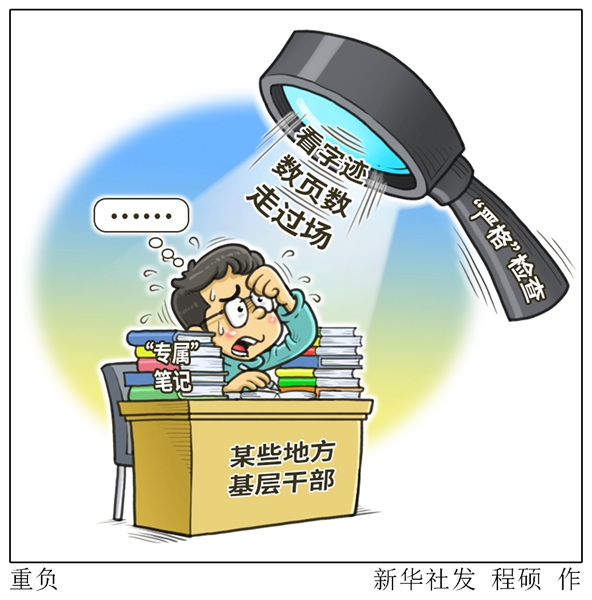 近年來,一些地方的基層干部手中小小的筆記本成為如山重負(fù)。凡有活動必有“專屬”筆記,凡是筆記必要“嚴(yán)格”檢查。一些鄉(xiāng)鎮(zhèn)干部手頭甚至備著十多個筆記本,專本專用,應(yīng)付不同檢查事項(xiàng)。在農(nóng)村,一些年紀(jì)大的黨員眼花手慢,為了湊夠整個支部的筆記本數(shù)量,只能讓年輕黨員挑燈夜戰(zhàn)換著字跡多抄幾本。而所謂“嚴(yán)格”檢查,無非就是看字跡、數(shù)頁數(shù),走過場。一名干部反映,寫了兩頁半的學(xué)習(xí)心得被批評不夠“深刻”,得再“劃拉”半頁才能過關(guān)。