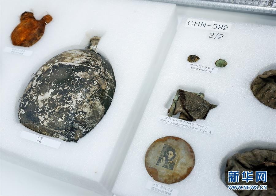 這是在遺骸裝殮儀式現(xiàn)場拍攝的部分志愿軍烈士遺物(4月1日攝)。新華社記者 王婧嬙 攝