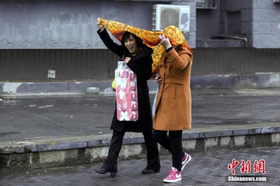 資料圖:民眾在雨中出行。中新社記者 賈天勇 攝