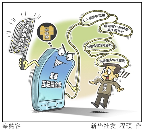 俗話說,人熟為寶。在傳統商業道德里,熟客應該享受優待。然而,如今人們發現,熟客往往頻頻挨宰:個人信息被濫用、給老客戶的價格高于新手價、專挑會員定向漲價、買得越多價格越貴……一些網絡平臺用大數據技術收集分析消費者偏好、消費能力等信息后,不約而同地把矛頭指向熟客,以至于有人感嘆“最懂你的人傷你最深”。