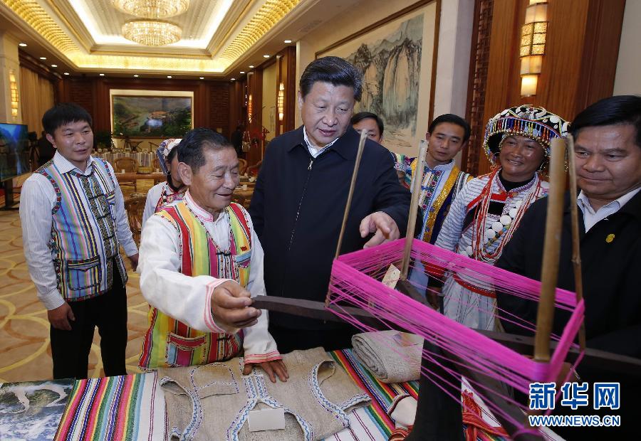 2015年1月20日,習(xí)近平向獨龍族群眾代表詢問民族特有生產(chǎn)工具使用情況