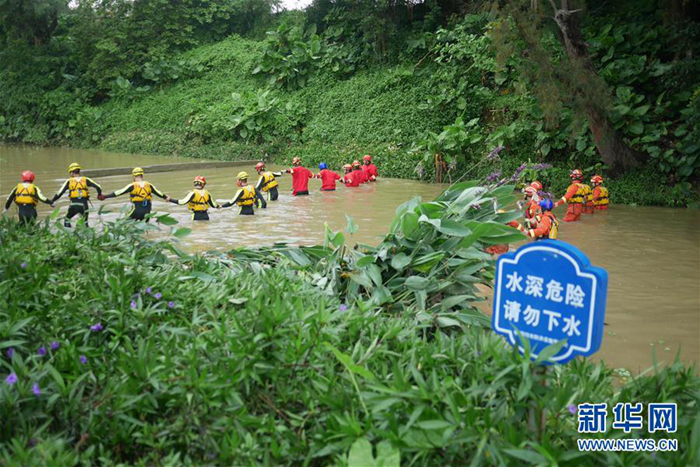 4月12日,搜救人員在深圳羅湖區沙灣河東湖公園段搜救。新華社記者 王豐 攝