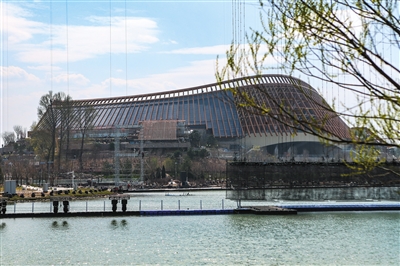 昨日,記者探訪世園會,中國館等主要展館室內布展工作已基本完成。本版攝影/新京報記者 彭子洋