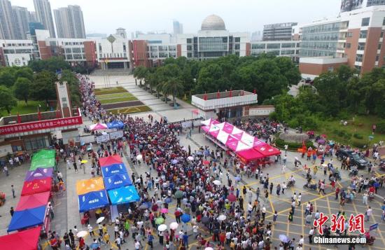 資料圖:高考首場(chǎng)考試結(jié)束后,考生有序走出考場(chǎng),形成的隊(duì)伍猶如“長(zhǎng)龍”。中新社記者 劉占昆 攝