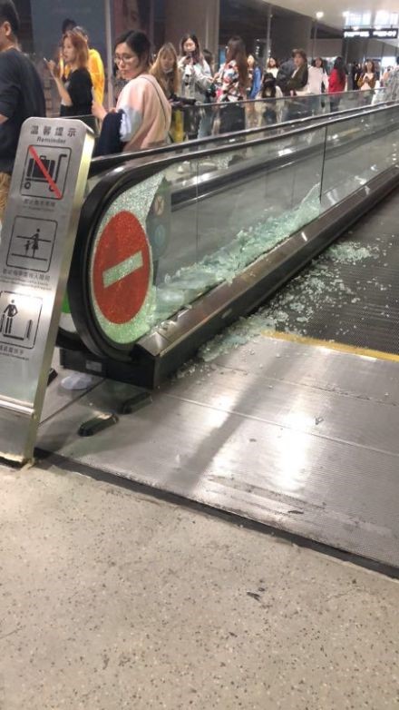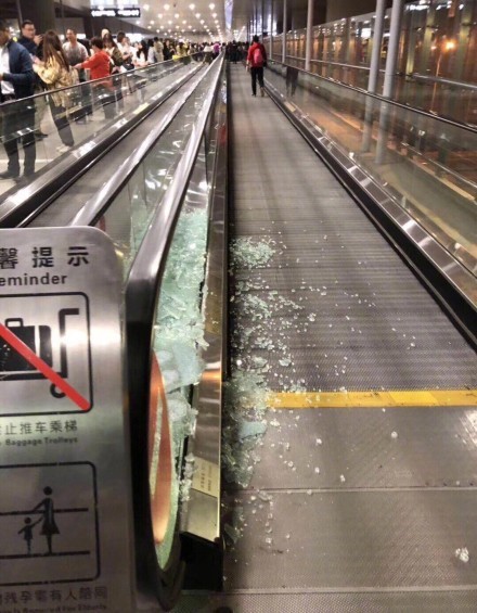 從許多微博大V和網友貼出的“受傷”步行自動扶梯照片來看,步行扶梯玻璃護欄碎了一地,一旁正是人山人海的接機粉絲。