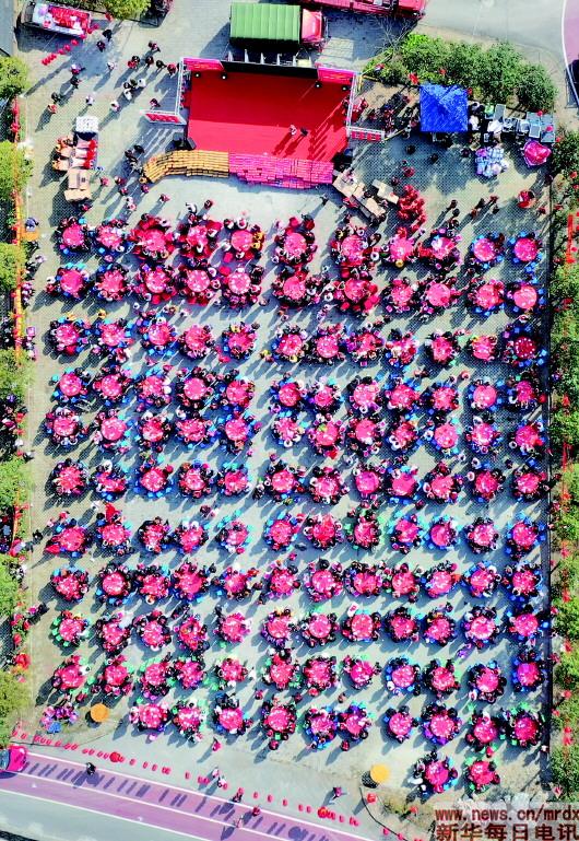 2019年春節(jié)期間,鄒凌團(tuán)隊(duì)在汶川地震震中的映秀鎮(zhèn)漁子溪村舉行“壩壩宴”,十余年來,鄒凌和團(tuán)隊(duì)成員堅(jiān)持每年春節(jié)都在漁子溪村度過,通過舉辦春節(jié)晚會(huì)、“壩壩宴”等形式,鼓舞人心,幫助群眾走出災(zāi)難陰影。受訪者供圖?