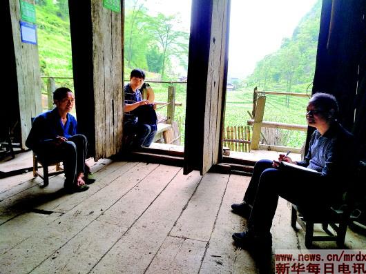 黃吉安(右一)生前在崇文村農戶家走訪。(受訪者供圖)