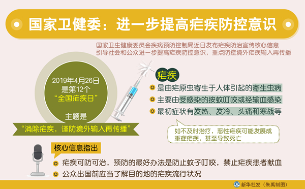 新華社北京4月25日電(記者田曉航)今年4月26日是第12個“全國瘧疾日”,主題是“消除瘧疾,謹防境外輸入再傳播”。國家衛生健康委員會疾病預防控制局近日發布瘧疾防治宣傳核心信息,引導社會和公眾進一步提高瘧疾防控意識,重點防控境外瘧疾輸入再傳播。