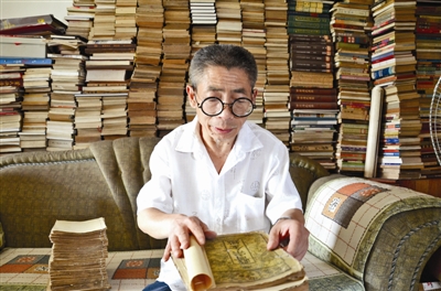 他眼中的這些“精神財富”,曾被妻子看成廢紙一堆,勸他賣書換錢供兒子上大學,但他堅決不肯,仍是繼續悄悄買書帶回家中,至今如此。