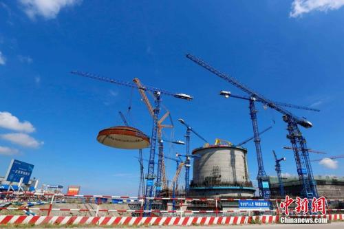 資料圖:圖為中國(guó)自主三代核電技術(shù)“華龍一號(hào)”吊裝穹頂。中新社發(fā) 黃穗芳 攝
