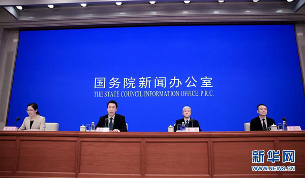 4月28日,國務院新聞辦公室在北京舉行新聞發布會,請國家知識產權局局長申長雨、國家知識產權局副局長趙剛、中宣部版權管理局局長于慈珂介紹2018年中國知識產權發展狀況,并答記者問。新華社記者 潘旭 攝