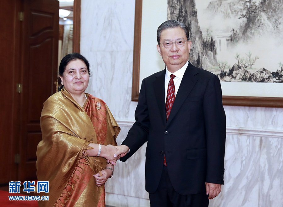 4月29日,中共中央政治局常委、中央紀委書記趙樂際在北京釣魚臺國賓館會見尼泊爾總統班達里。新華社記者丁林攝