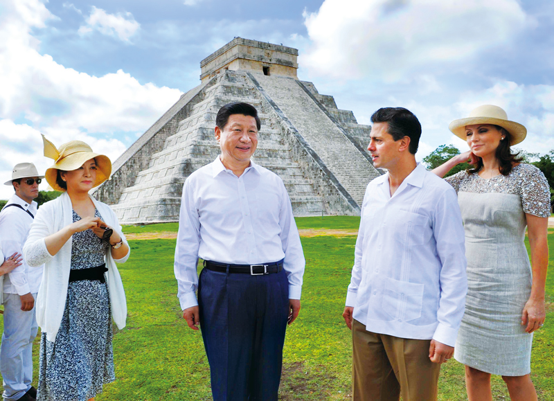 2013年6月6日,為推進中墨兩個文明古國的文化交流,國家主席習近平應培尼亞總統邀請參觀奇琴伊察瑪雅文明遺址。 新華社記者 饒愛民/攝