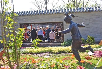 老北京四合院里常種的玉蘭、海棠、柿子樹、石榴樹將游客帶入老舍先生筆下“天棚魚缸石榴樹,老爺肥狗胖丫頭”的畫境中。隨著游客游覽步伐的移動(dòng),北京園的景色也在變化,每一個(gè)花窗外便是一幅景色。比如說,第二個(gè)窗景展示的便是新優(yōu)品種宿根花卉,牡丹、芍藥、月季、菊花、荷花,游客可在這里一一欣賞。