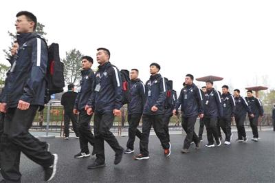 在世園會(huì)內(nèi)列隊(duì)“巡邏”的快遞小哥。快遞公司世園會(huì)站點(diǎn)供圖