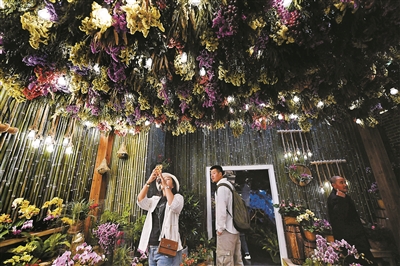 從北京世園會4號門進(jìn)入,即可體驗“東線”游覽線路,涵蓋生活體驗館、世界園藝展示區(qū)、國際館等主要場館和景區(qū)。昨天下午,北青報記者來到位于北京世園會東北部區(qū)域的生活體驗館。剛一進(jìn)門,眼前就浮現(xiàn)出一條“之”字形花田步道,參觀者可以自一樓沿坡道徐徐漫步至二樓,欣賞沿途不同主題的植物。步道兩側(cè)栽種著水仙、蝴蝶蘭、菊花等植物,還散落著不少用生活用品裝點的園藝小品,如小鞋子、小草帽、小木箱等。“我們通過這樣的布景方式,既體現(xiàn)綠色環(huán)保的生活理念,也是力求將園藝融入生活,體現(xiàn)‘愛園藝、愛生活’的美好主題。”生活體驗館館長助理樊川介紹說。