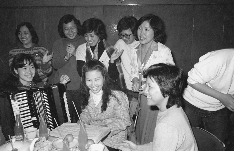 中、新兩國演員聯歡? 1983年3月19日,新加坡佳音合唱團的演員同中國歌劇演員在北京民族文化宮舉行聯歡。這是兩國演員在一起共唱中國歌曲《年輕的朋友來相會》。 新華社記者楊慎和攝