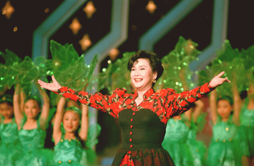 著名歌唱家李谷一在演唱《我和我的祖國》。新華社記者鞠鵬攝 (1996年7月3日發)